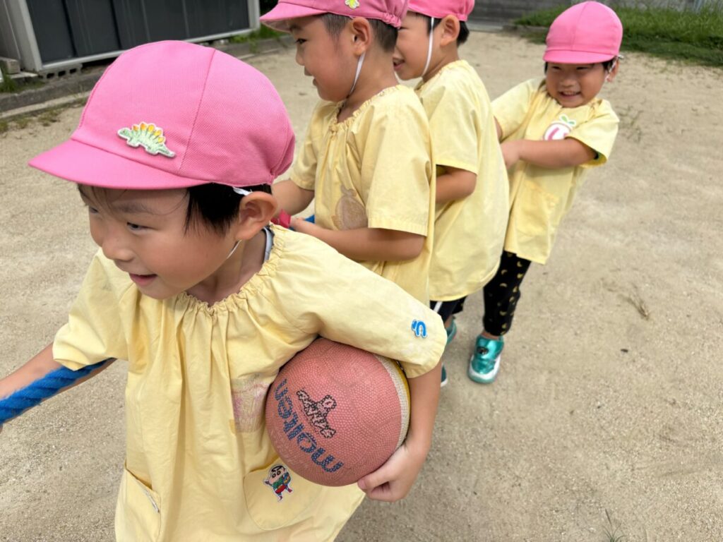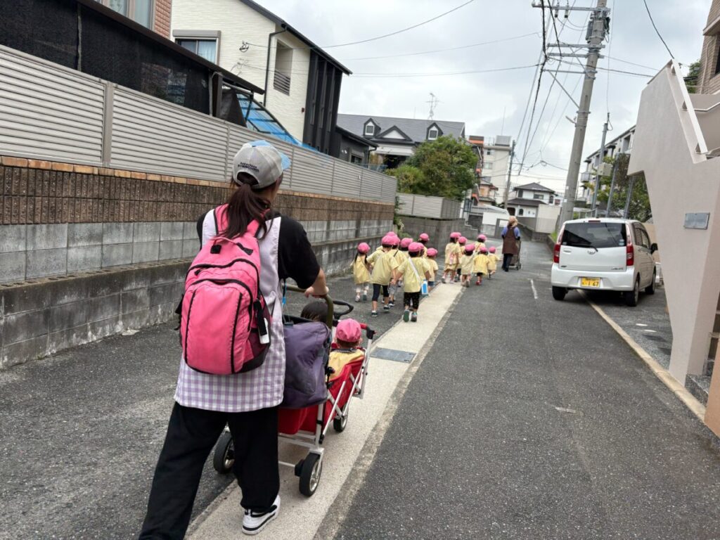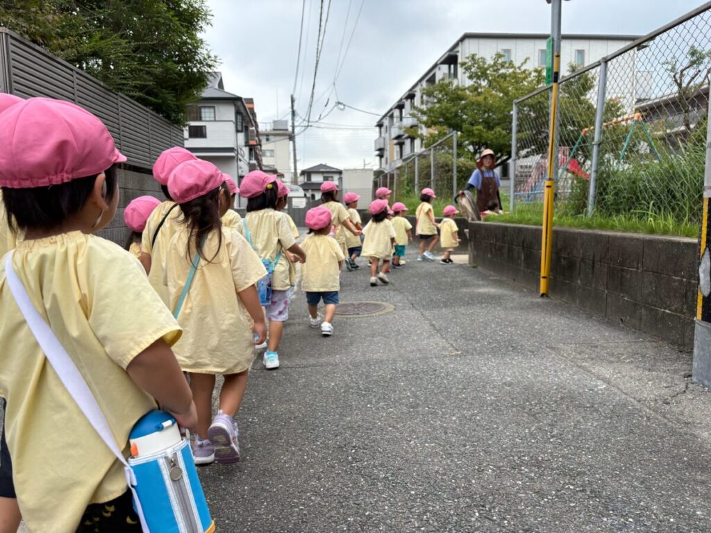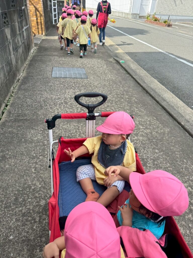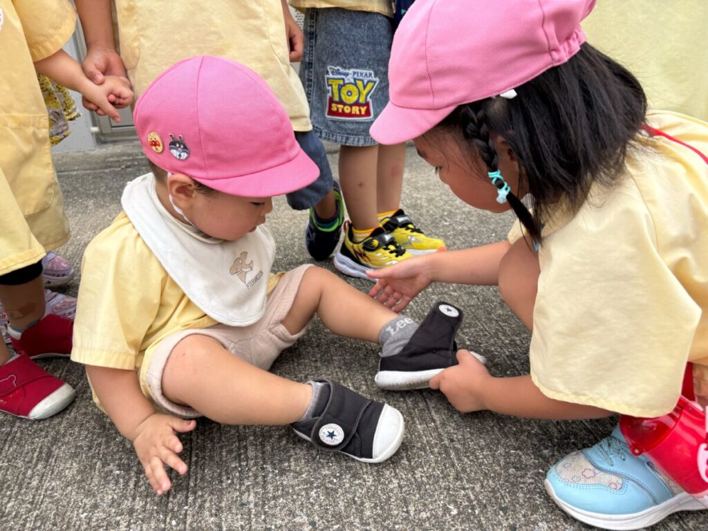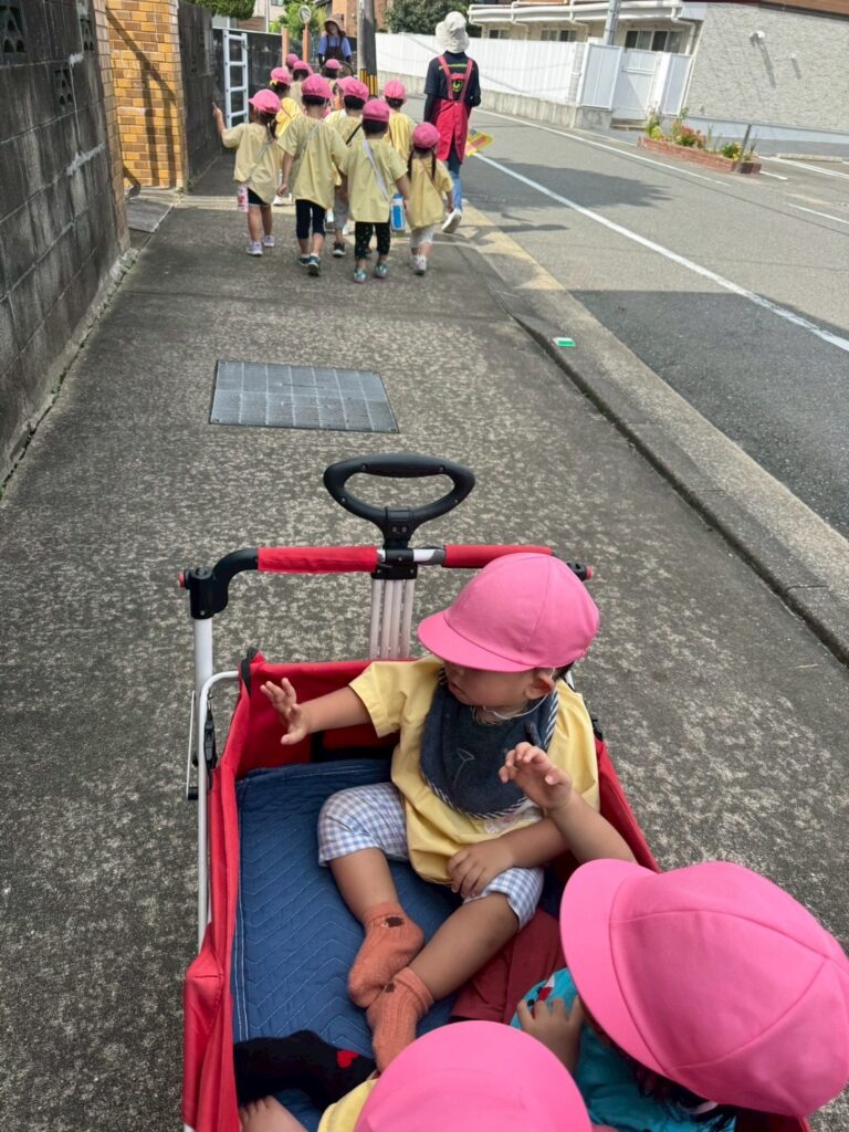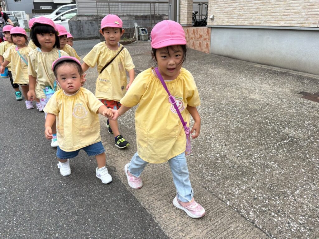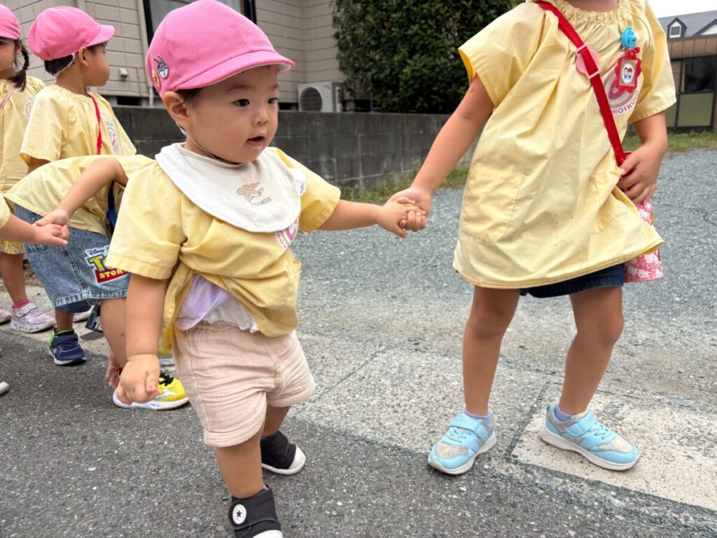 新入園のIちゃんも、大きい子と手をつないで