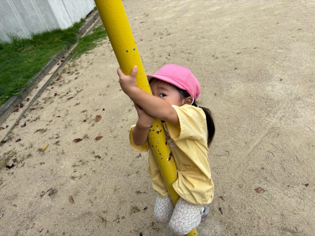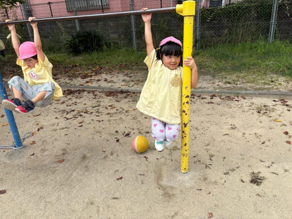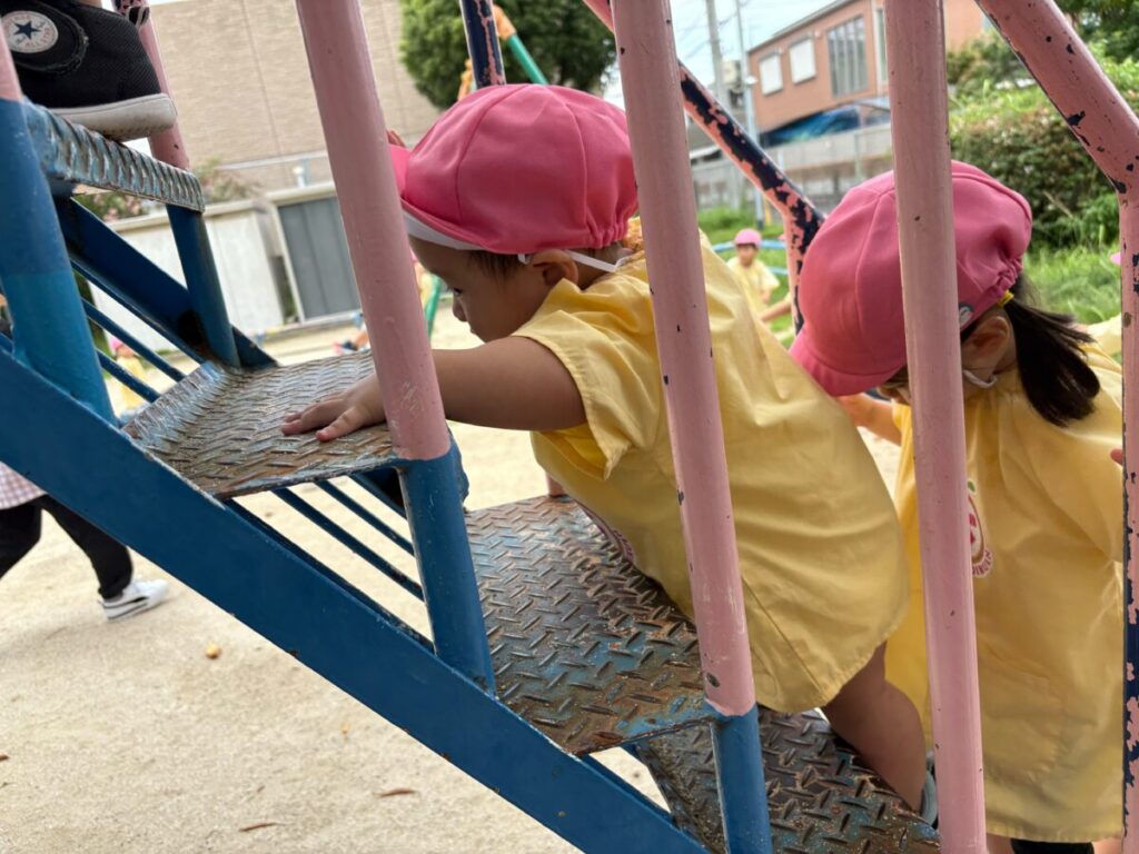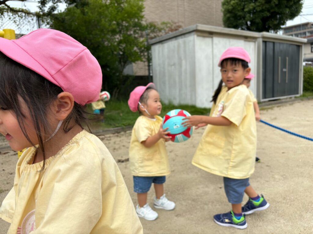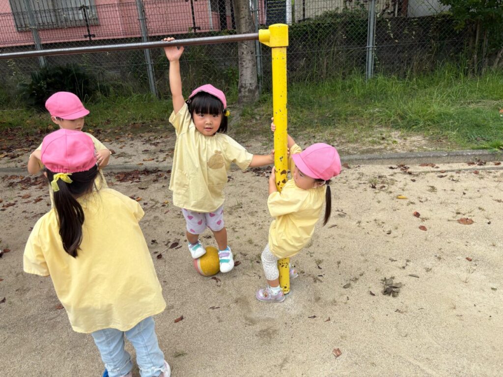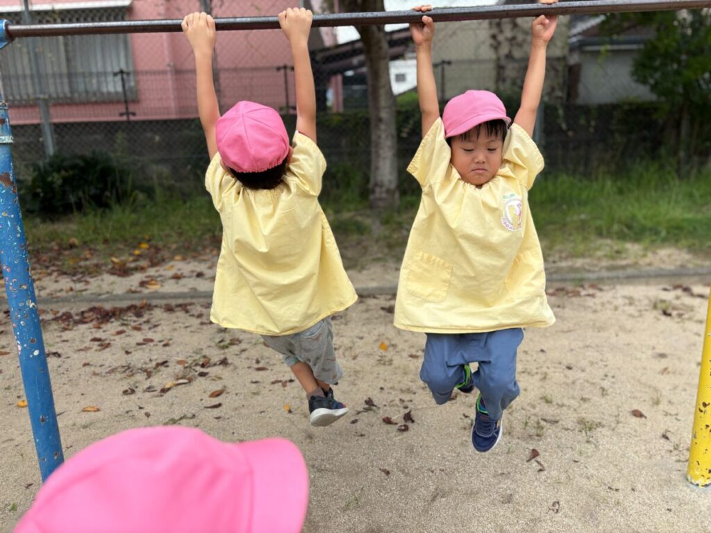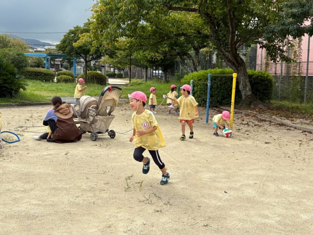 新入園のIちゃんも、大きい子と手をつないで