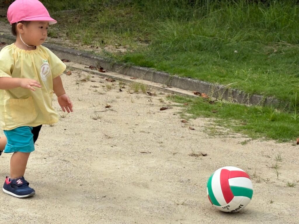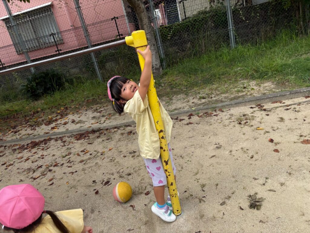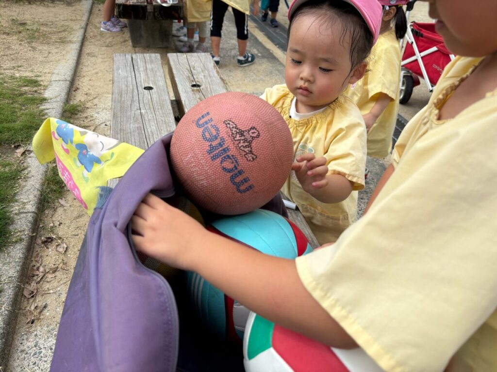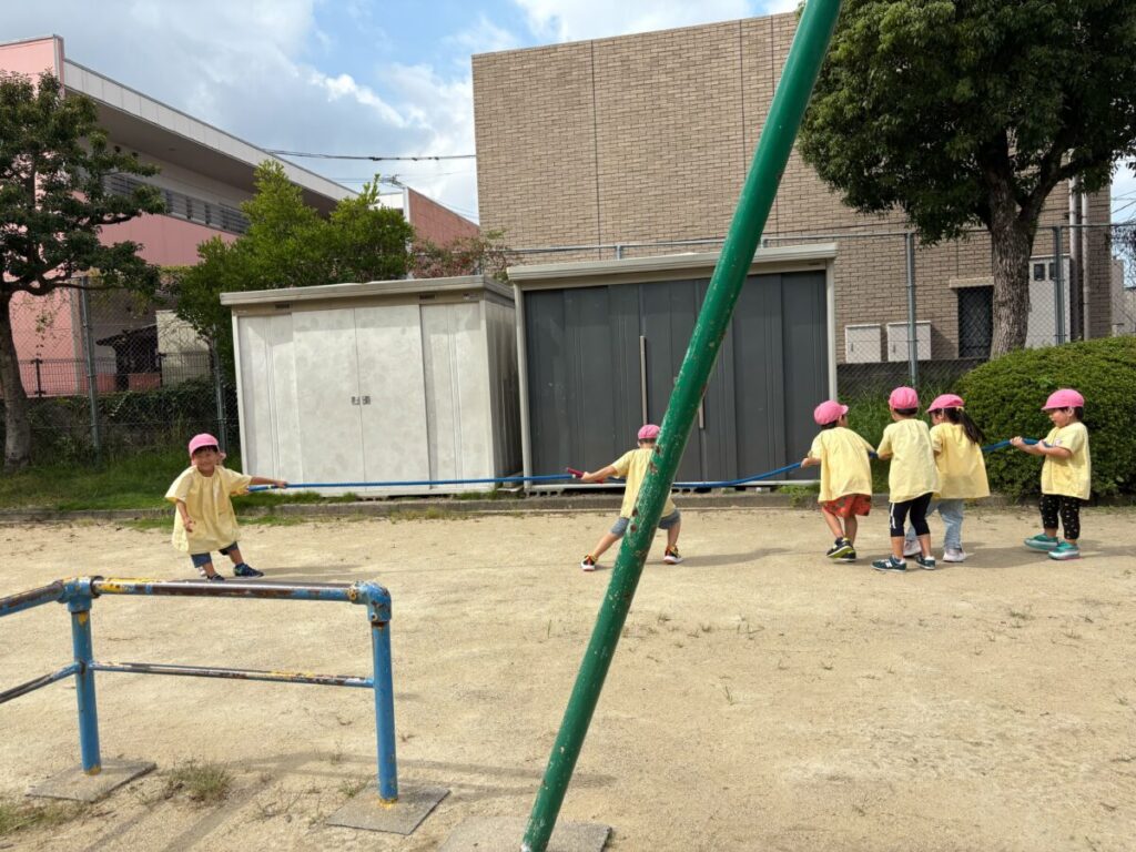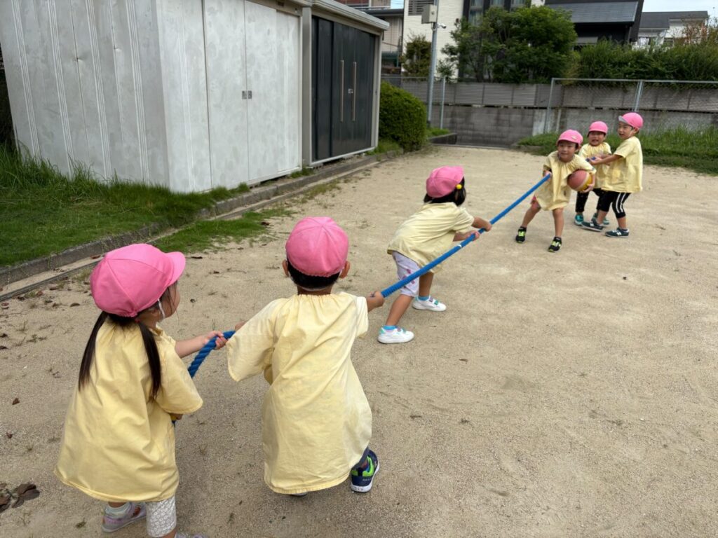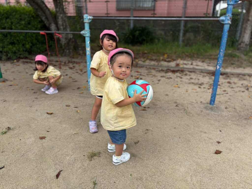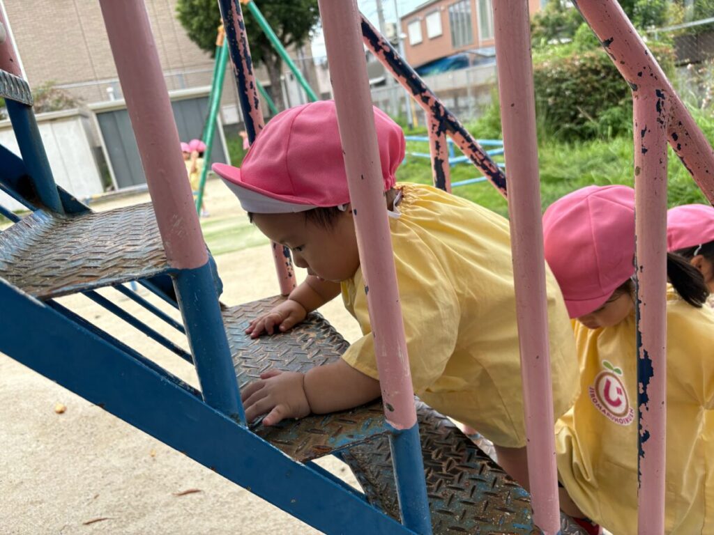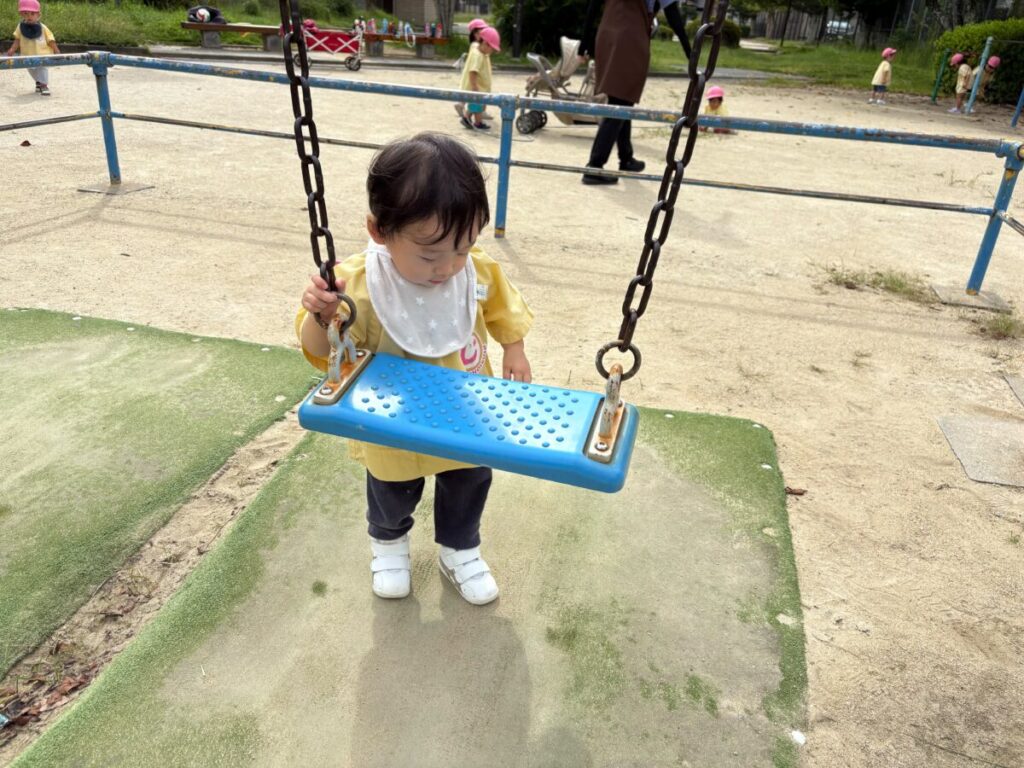 新入園のIちゃんも、大きい子と手をつないで