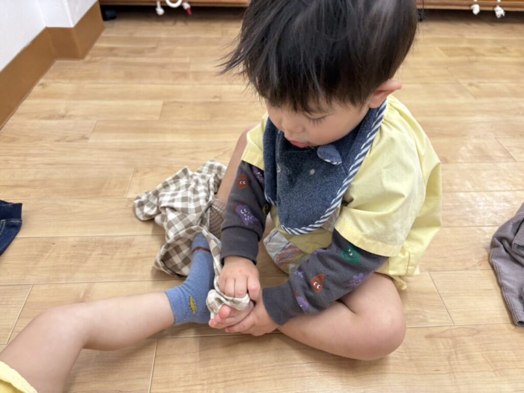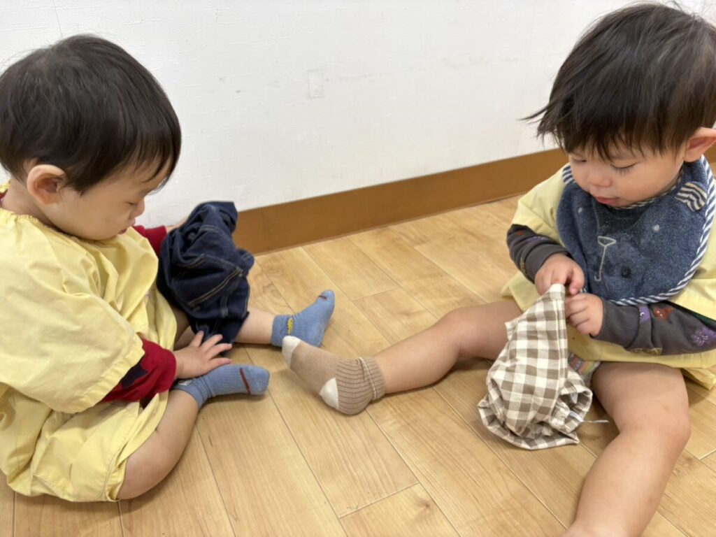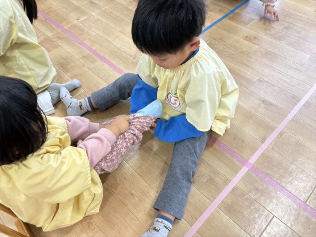 0歳児さんたちは、先生と一緒に練習(*^_^*)