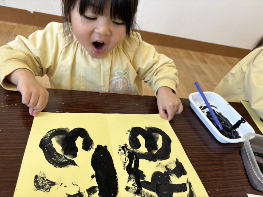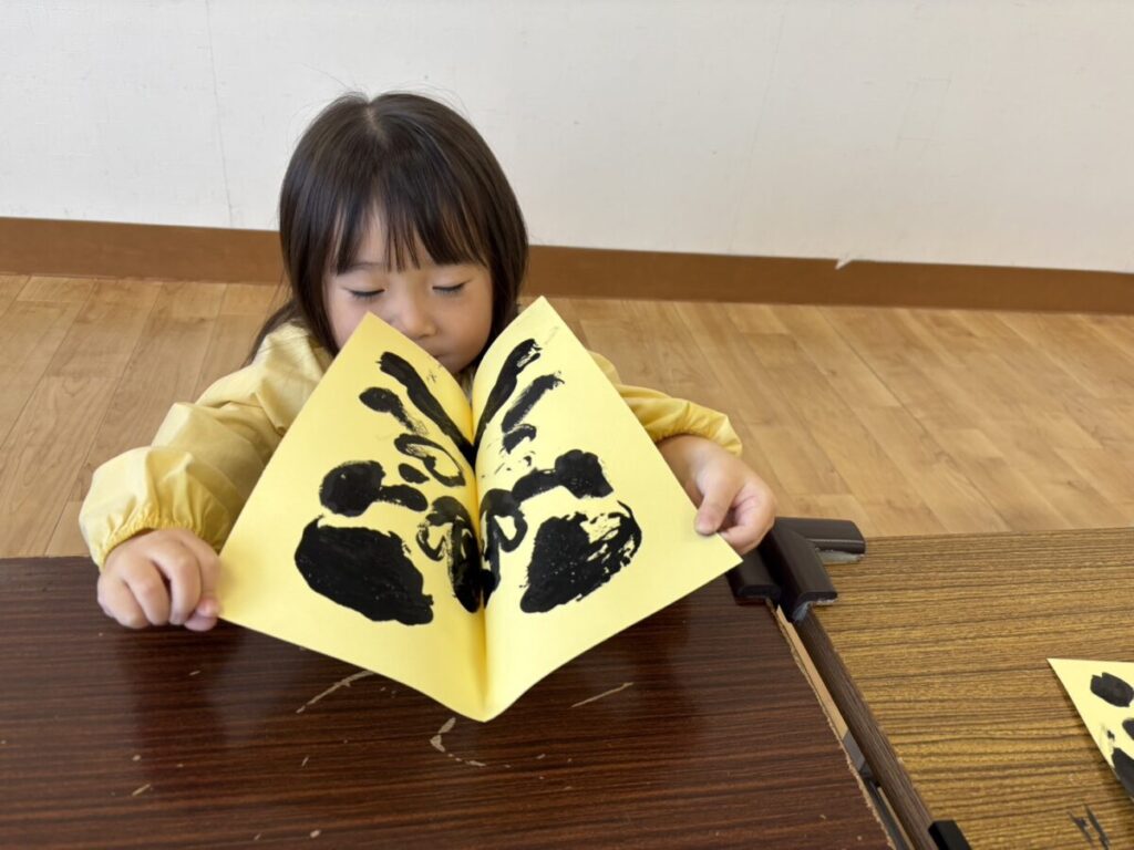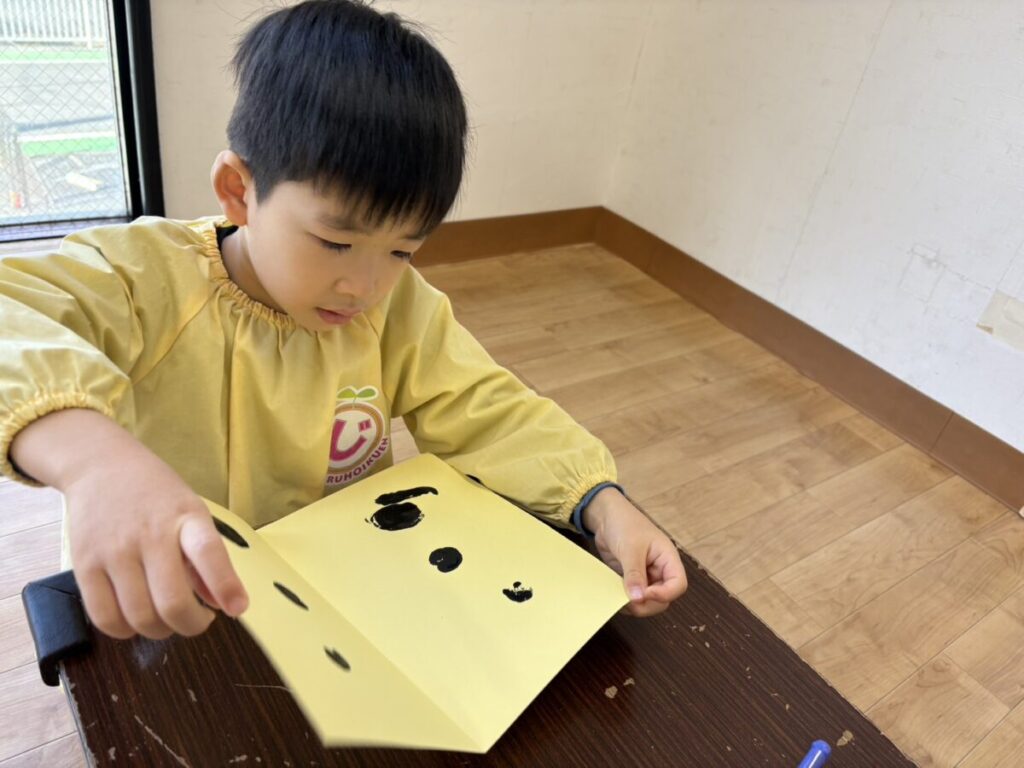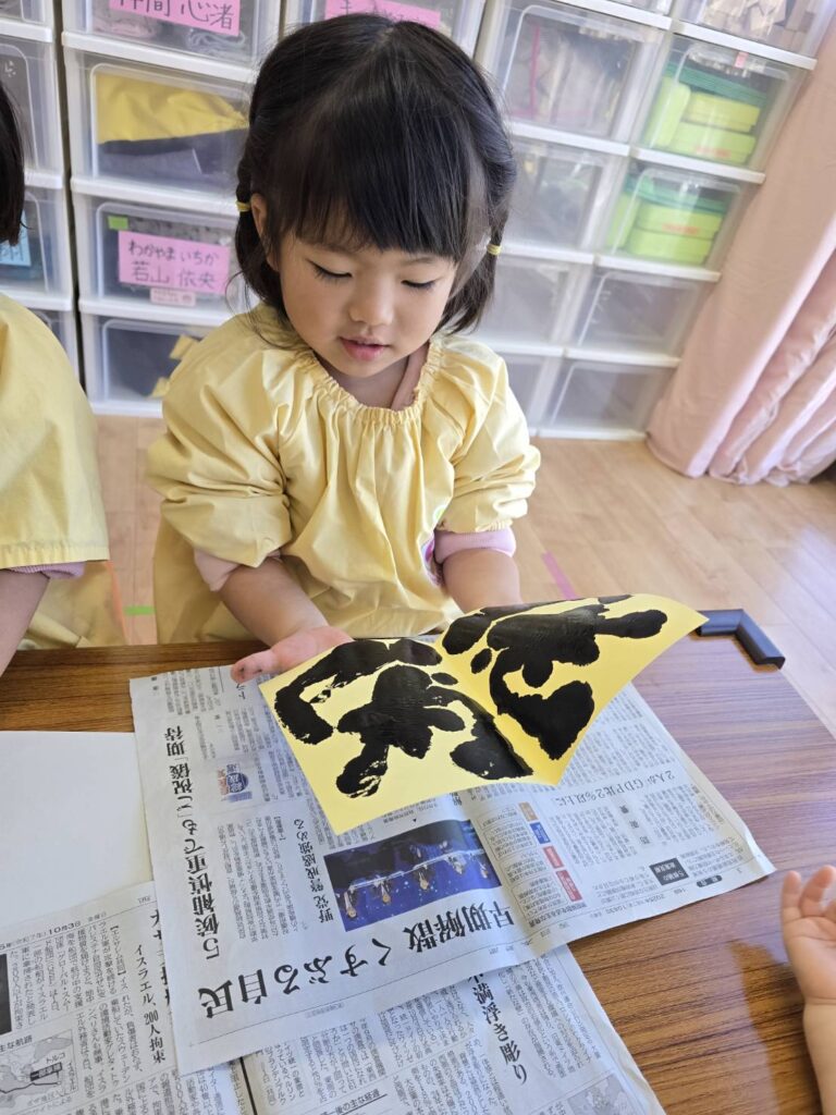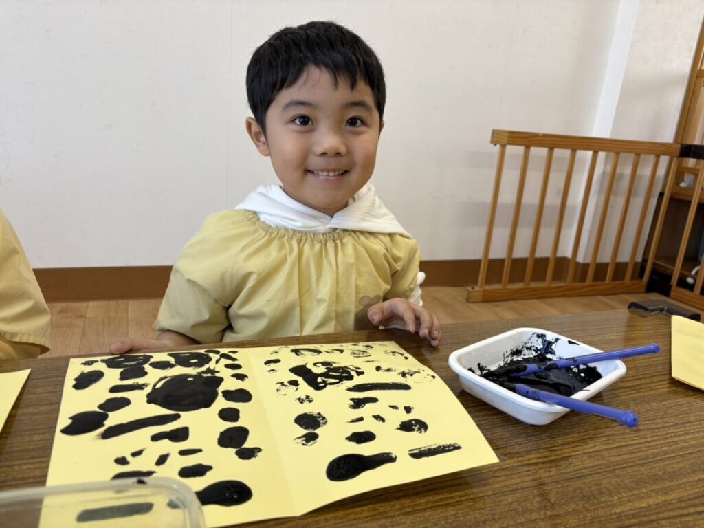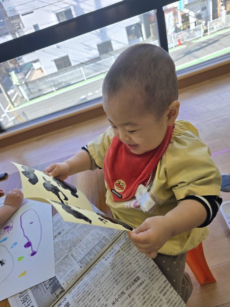 2026年02月02日 節分の制作★ 2月 じろうまる園のブログ まるじメソッド 異年齢保育 節分 節分の制作に、鬼のパンツを作りました(*^^*) デカルコマニーという転写の技法を用いて 黒の絵の具だけで行いました。 先生からどんなことをするのか お話です。 みんなしっかりと耳を傾けていました(*^^*) 小さい子も大きい子も、 どんな模様になるかワクワクドキドキでした(*^^*) 個性あふれるパンツが勢ぞろいしました(*^^*) 楽しい政策となりました(*^^*) 前の記事 次の記事 関連記事 2026年04月02日 令和8年度スタート!! 4月 じろうまる園のブログ まるじメソッド 異年齢保育 2026年04月01日 令和8年3月31日 令和7年度最後の日 3月 じろうまる園のブログ 異年齢保育 2026年03月29日 お別れ会 3月 お別れ遠足 じろうまる園のブログ 異年齢保育 野遊び保育 2026年03月23日 遊ぶぞ~~~!!!(≧◇≦)/~~~ 3月 じろうまる園のブログ まるじメソッド 公園 異年齢保育 野遊び保育 2026年03月21日 卒園式で歌う歌 3月 じろうまる園のブログ すだちの会 まるじメソッド 異年齢保育 2026年03月20日 卒園式会場作り 3月 じろうまる園のブログ すだちの会 まるじメソッド 異年齢保育