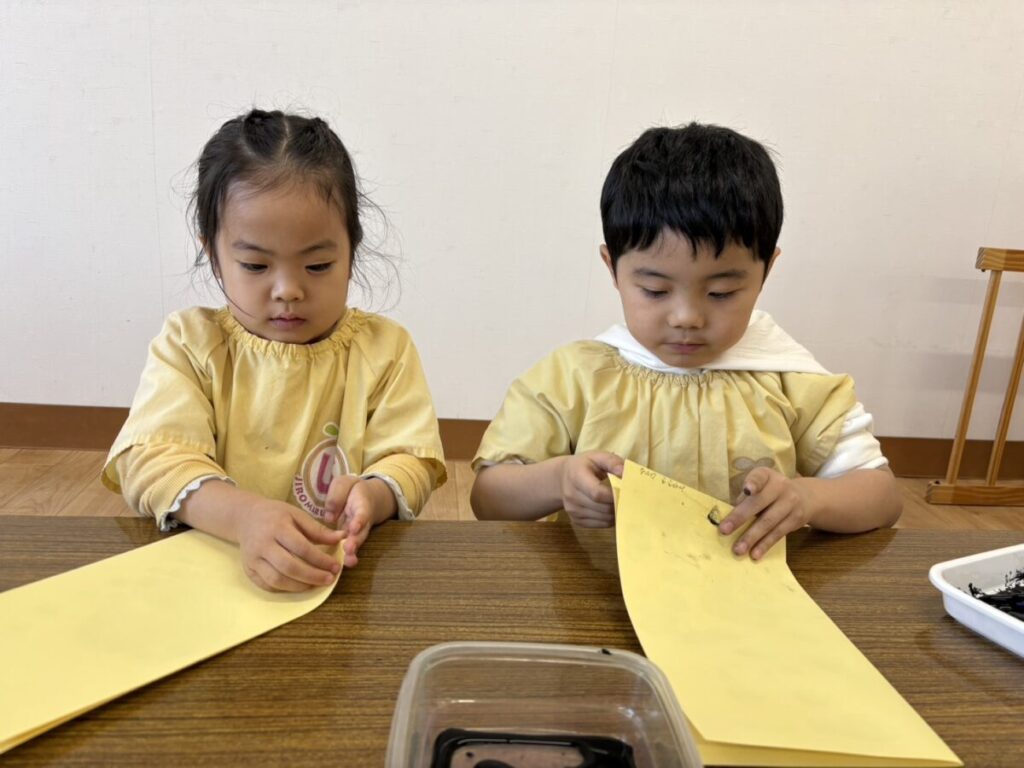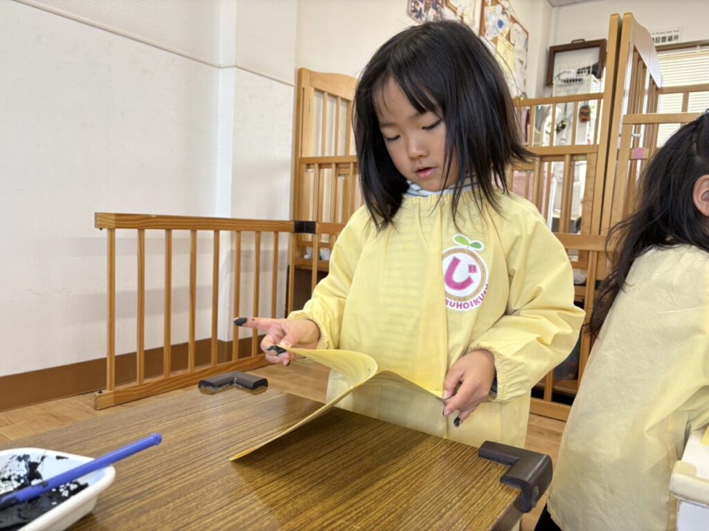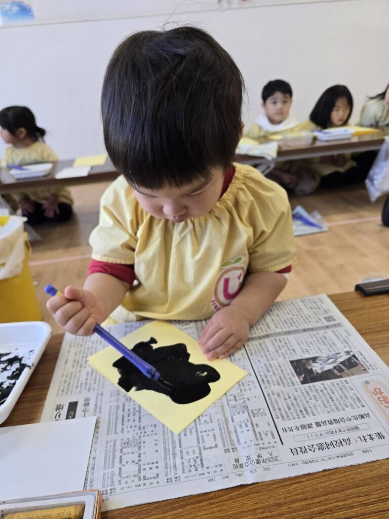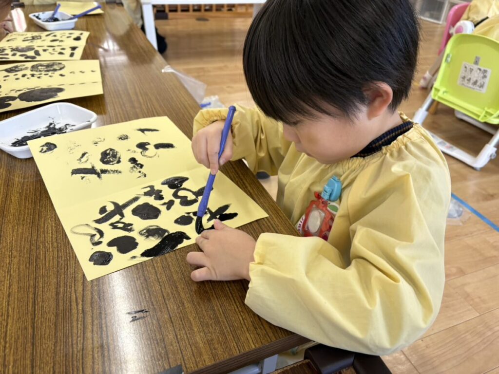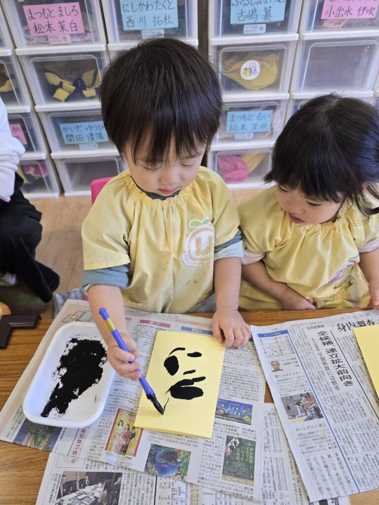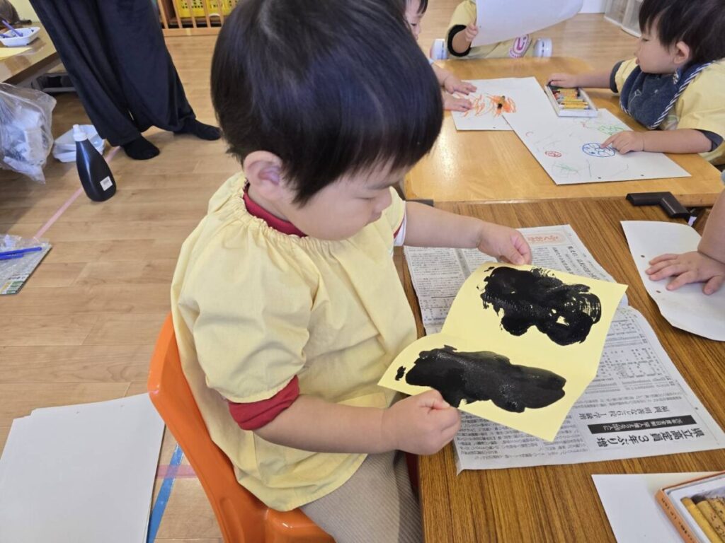 2026年02月02日 節分の制作★ 2月 じろうまる園のブログ まるじメソッド 異年齢保育 節分 節分の制作に、鬼のパンツを作りました(*^^*) デカルコマニーという転写の技法を用いて 黒の絵の具だけで行いました。 先生からどんなことをするのか お話です。 みんなしっかりと耳を傾けていました(*^^*) 小さい子も大きい子も、 どんな模様になるかワクワクドキドキでした(*^^*) 個性あふれるパンツが勢ぞろいしました(*^^*) 楽しい政策となりました(*^^*) 前の記事 次の記事 関連記事 2026年04月02日 令和8年度スタート!! 4月 じろうまる園のブログ まるじメソッド 異年齢保育 2026年04月01日 令和8年3月31日 令和7年度最後の日 3月 じろうまる園のブログ 異年齢保育 2026年03月29日 お別れ会 3月 お別れ遠足 じろうまる園のブログ 異年齢保育 野遊び保育 2026年03月23日 遊ぶぞ~~~!!!(≧◇≦)/~~~ 3月 じろうまる園のブログ まるじメソッド 公園 異年齢保育 野遊び保育 2026年03月21日 卒園式で歌う歌 3月 じろうまる園のブログ すだちの会 まるじメソッド 異年齢保育 2026年03月20日 卒園式会場作り 3月 じろうまる園のブログ すだちの会 まるじメソッド 異年齢保育