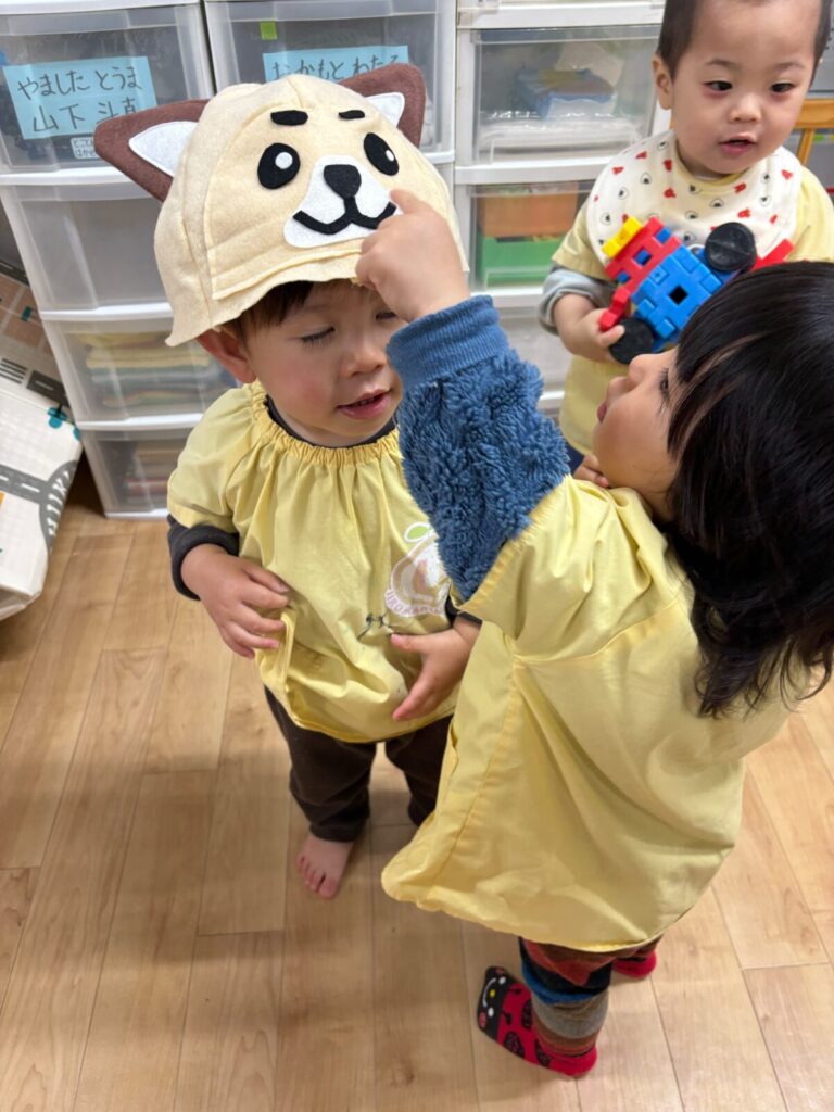 2026年03月20日 衣装にチャレンジ! 3月 じろうまる園のブログ すだちの会 まるじメソッド 異年齢保育 小さい子たちに衣装を着せるのは、 なかなかの至難の技です・・・^_^; 着るのいや!! かぶるの嫌!!!!です(^_^;)💦 当日に向けて、幾度となく 装着を繰り返します(笑) 「かわいい~~!!!」 「かっこいい~~~!!!」 と、みんなに大絶賛されます(*^_^*) 次第にお気に召していただけるよう 最大限の努力を惜しみません!!(笑) 前の記事 関連記事 2026年03月20日 衣装にチャレンジ! 3月 じろうまる園のブログ すだちの会 まるじメソッド 異年齢保育 2026年03月20日 小さい子たちの練習 2月 じろうまる園のブログ すだちの会 まるじメソッド 異年齢保育 2026年02月20日 この季節になりました。 2月 じろうまる園のブログ 異年齢保育 2026年02月18日 久しぶりの室見川♪ 2月 じろうまる園のブログ 公園 異年齢保育 野遊び保育 2026年02月02日 背景作り 2 1月 じろうまる園のブログ まるじメソッド 異年齢保育 2026年02月02日 背景作り 1 1月 じろうまる園のブログ まるじメソッド 異年齢保育