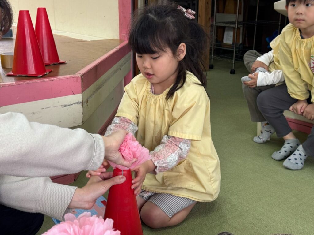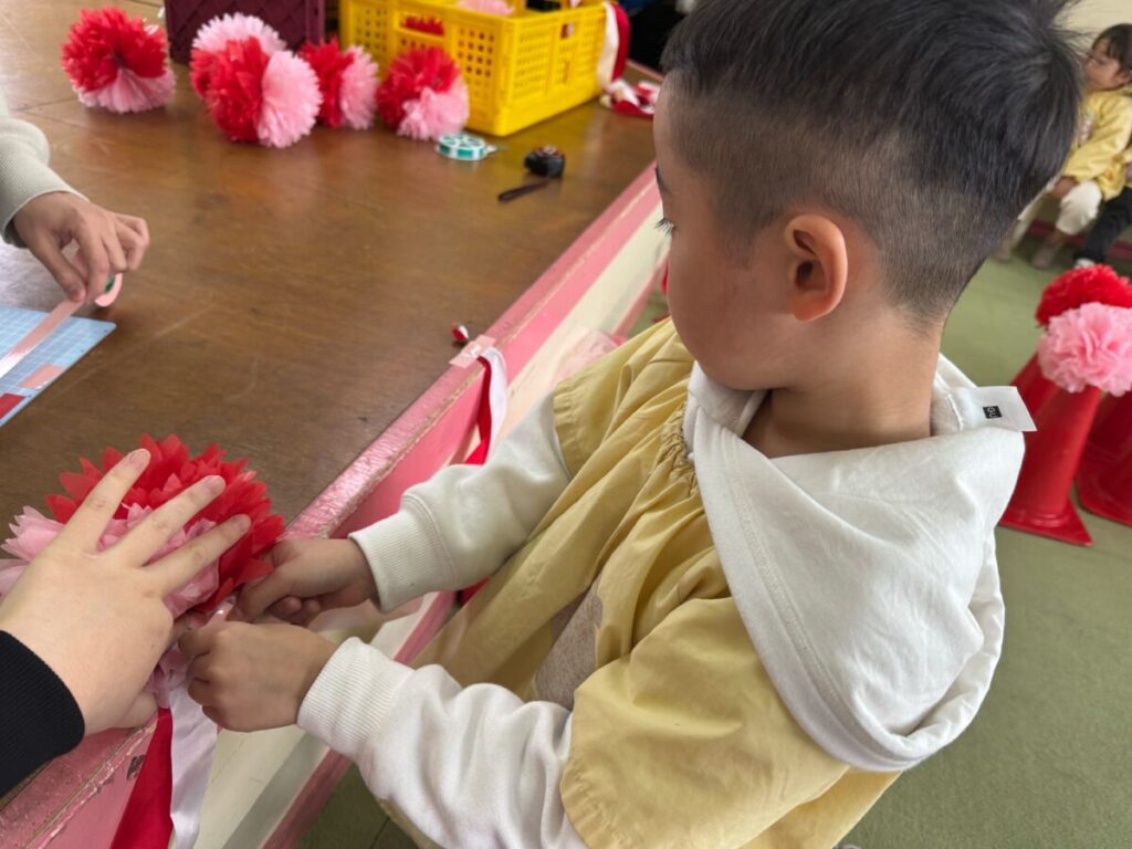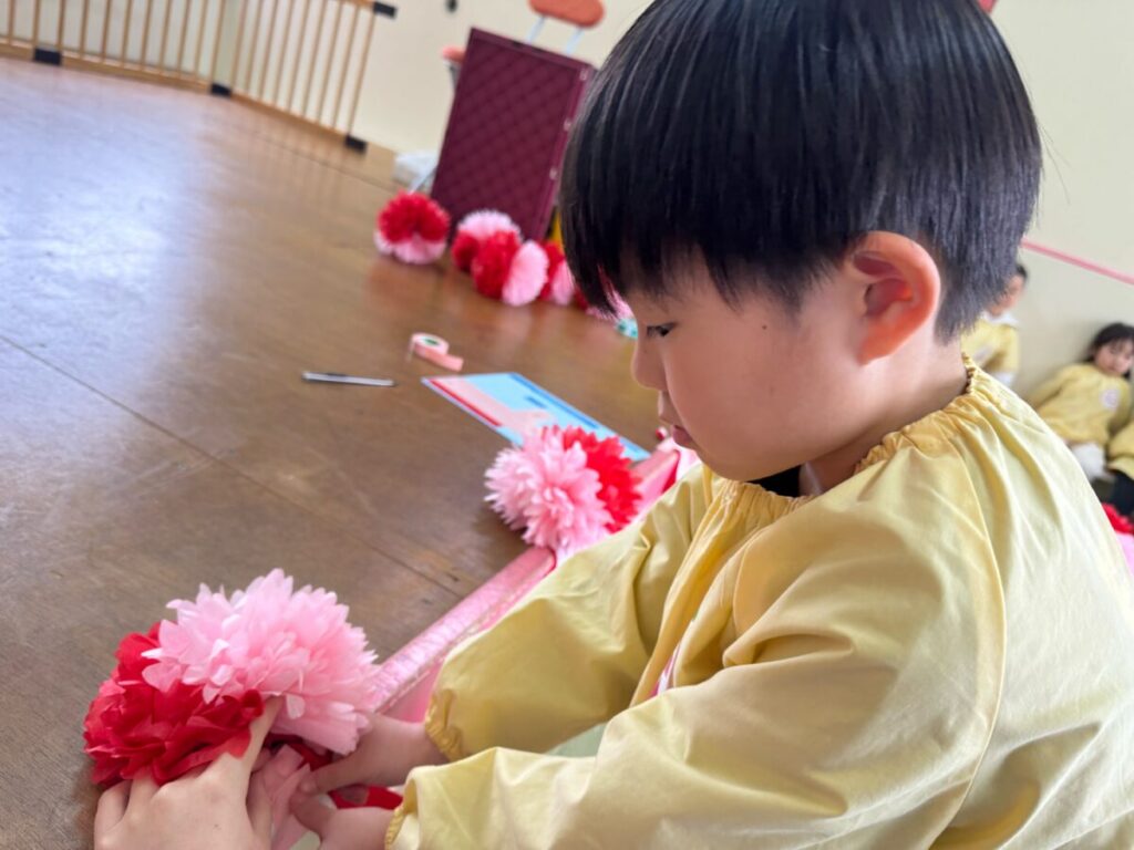 みんなで卒園式の会場作りをしました。