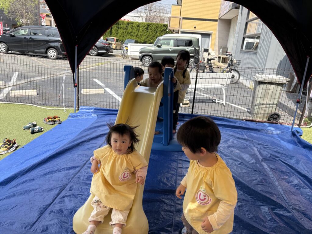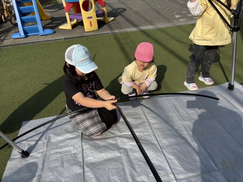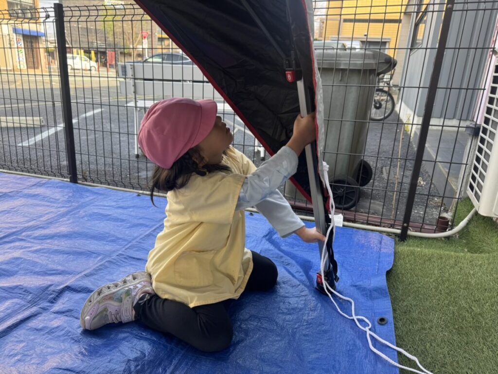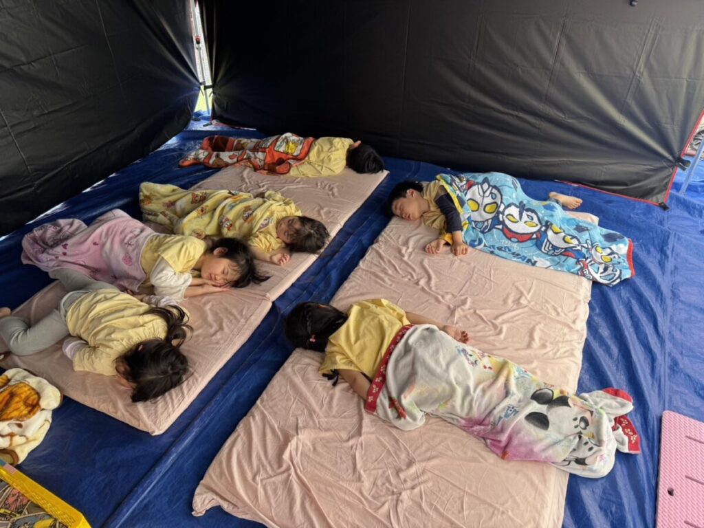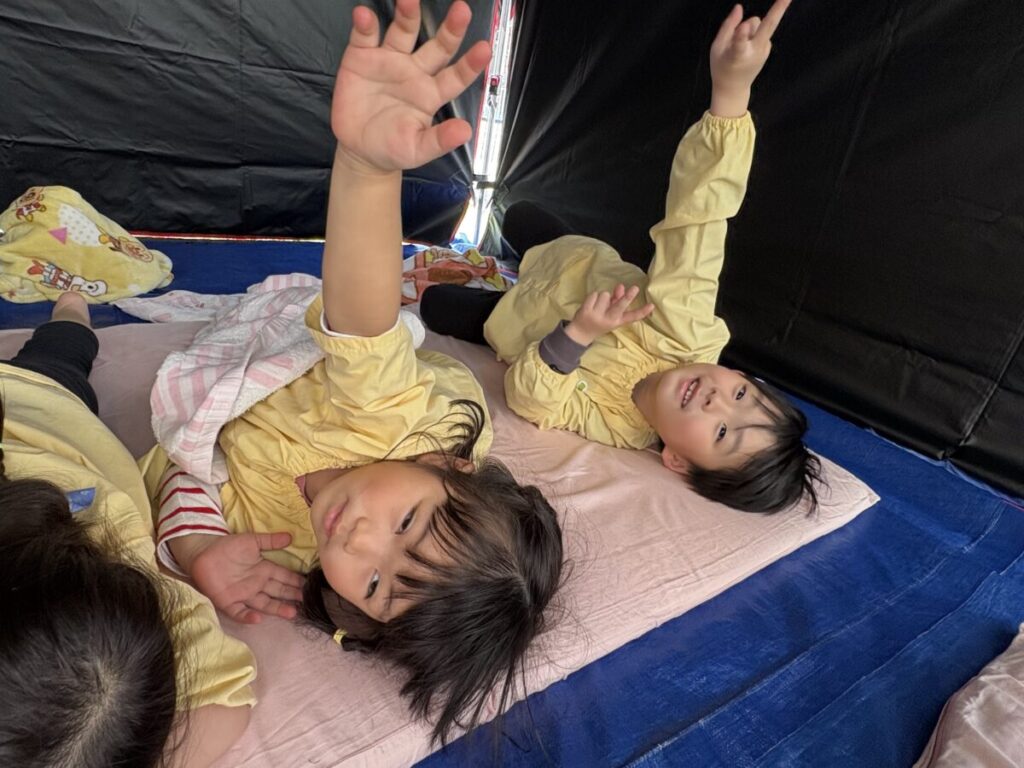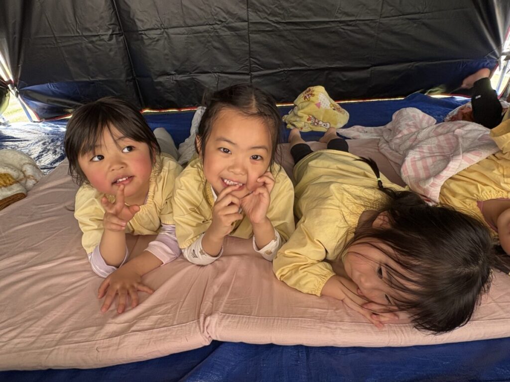 テントでは、お昼ご飯を食べて、みんなで遊んで、大きい子たちと小学生はお昼寝まで過ごす予定です✨