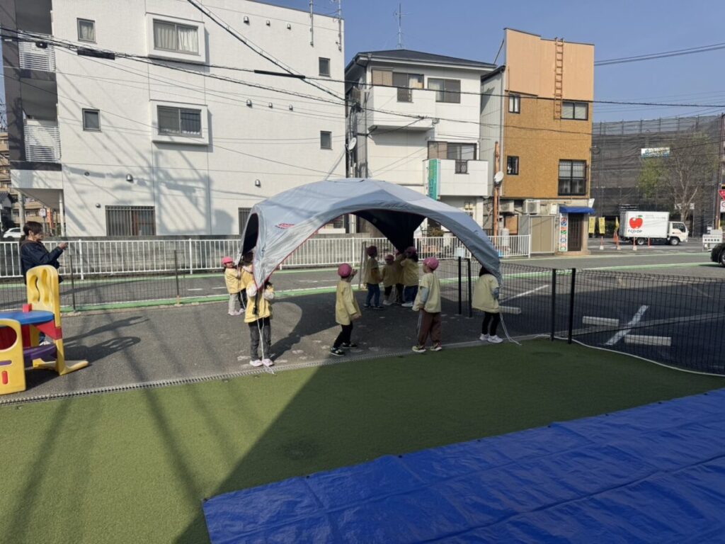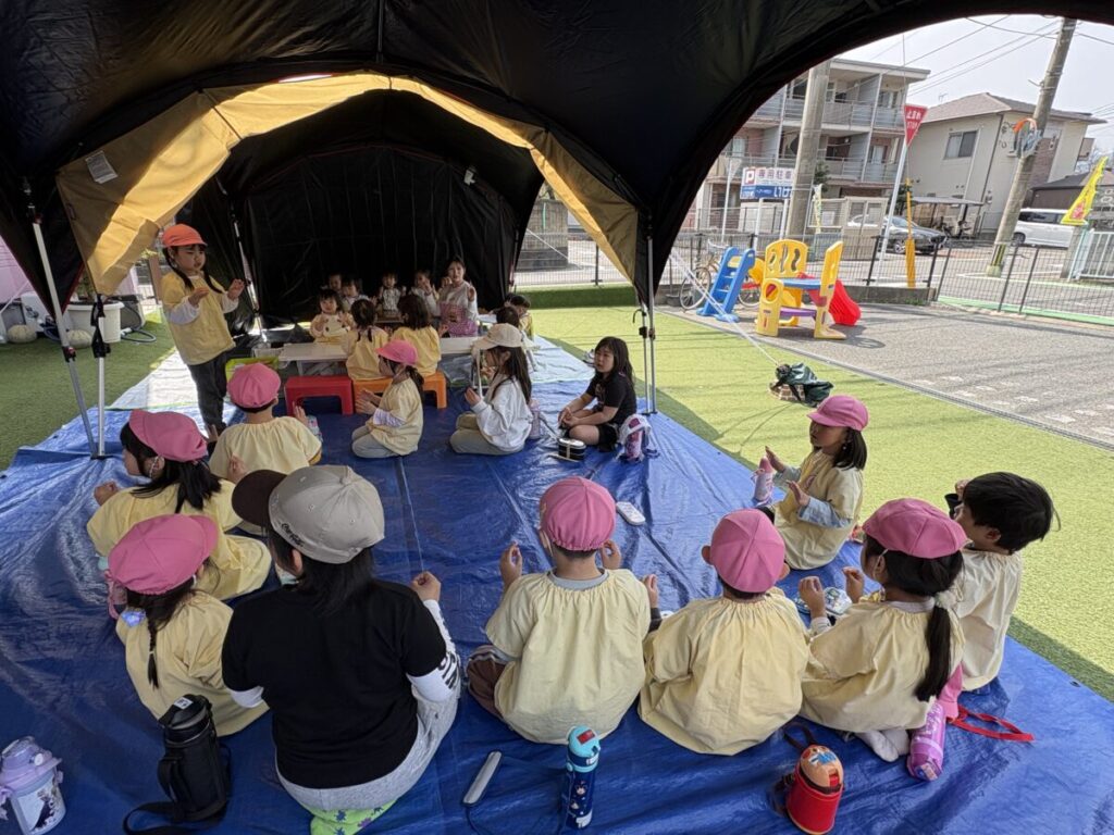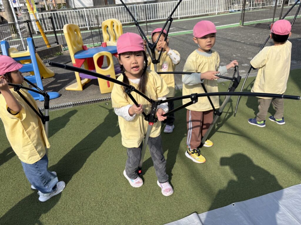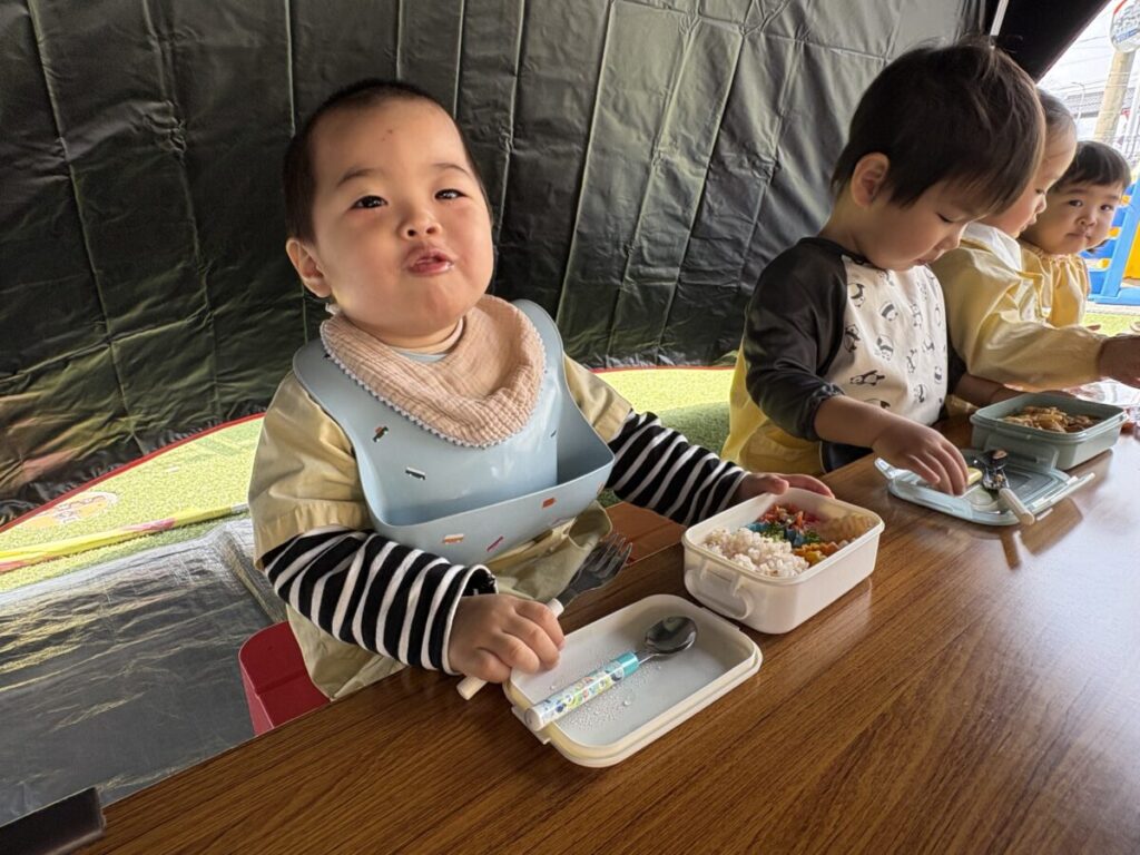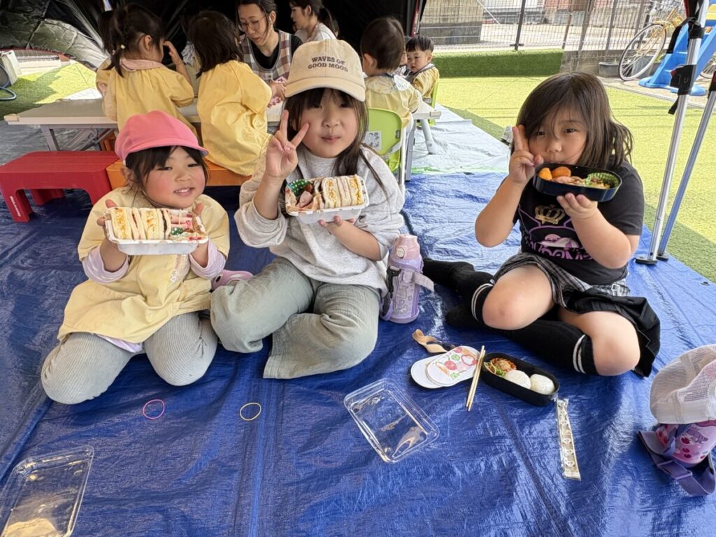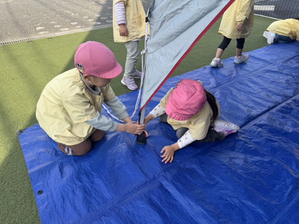 テントでは、お昼ご飯を食べて、みんなで遊んで、大きい子たちと小学生はお昼寝まで過ごす予定です✨