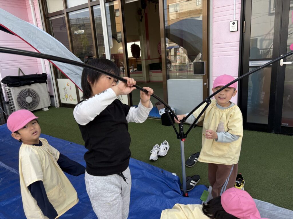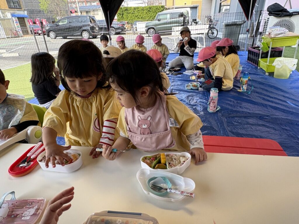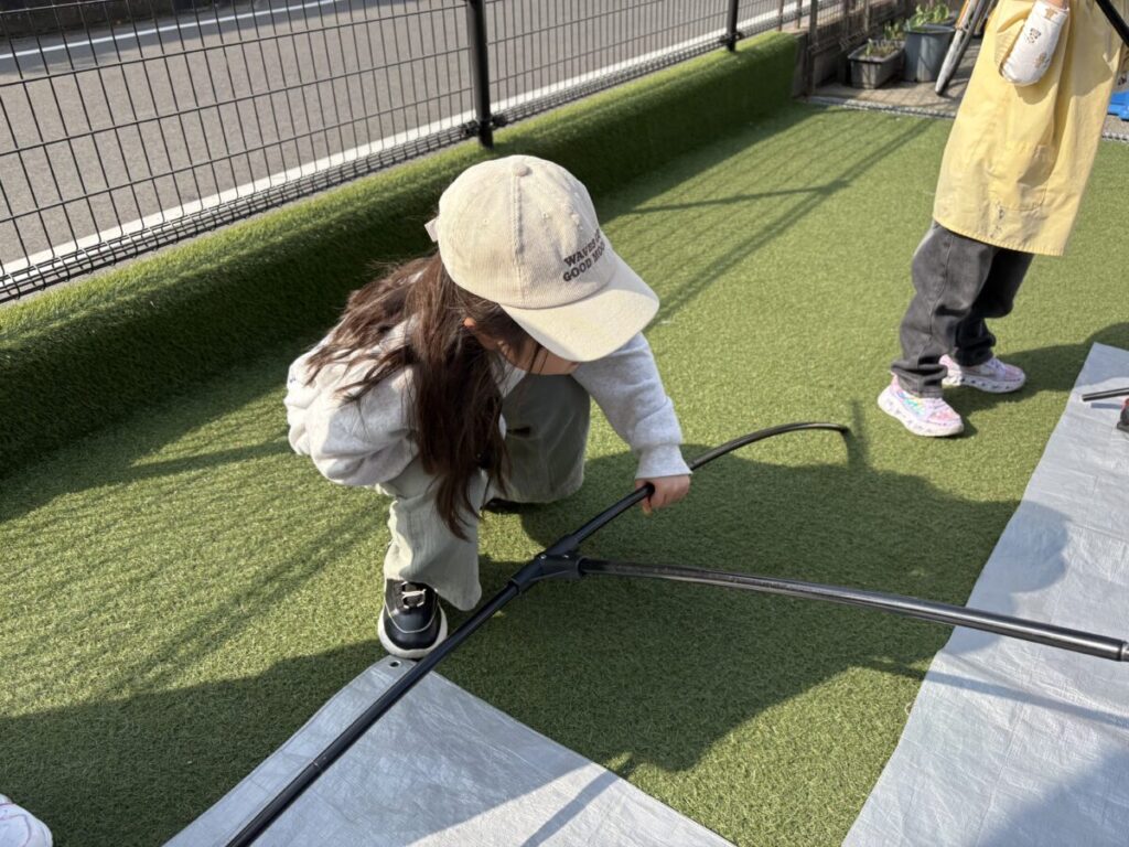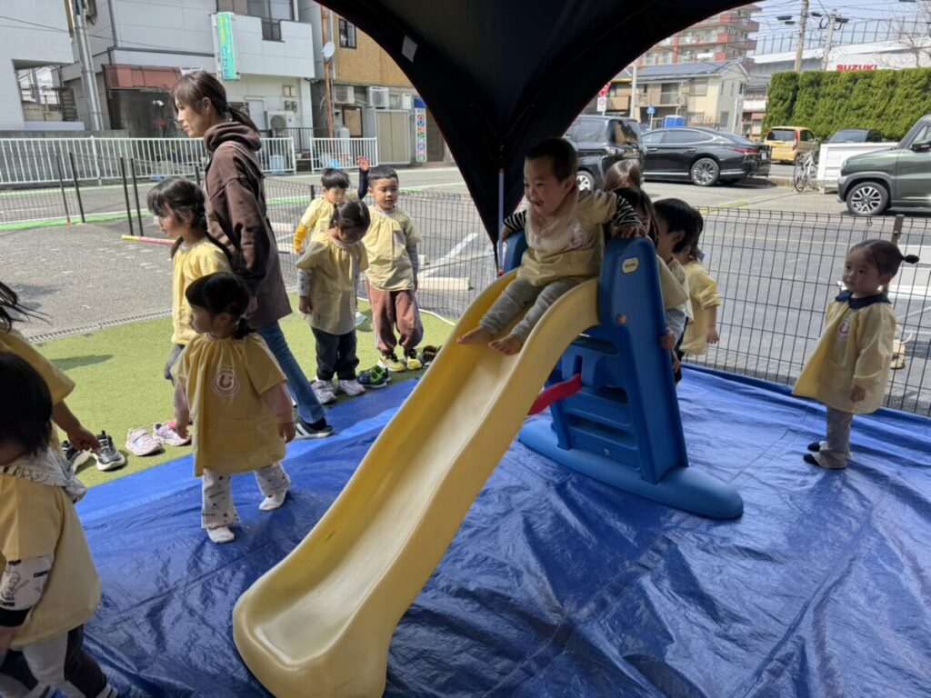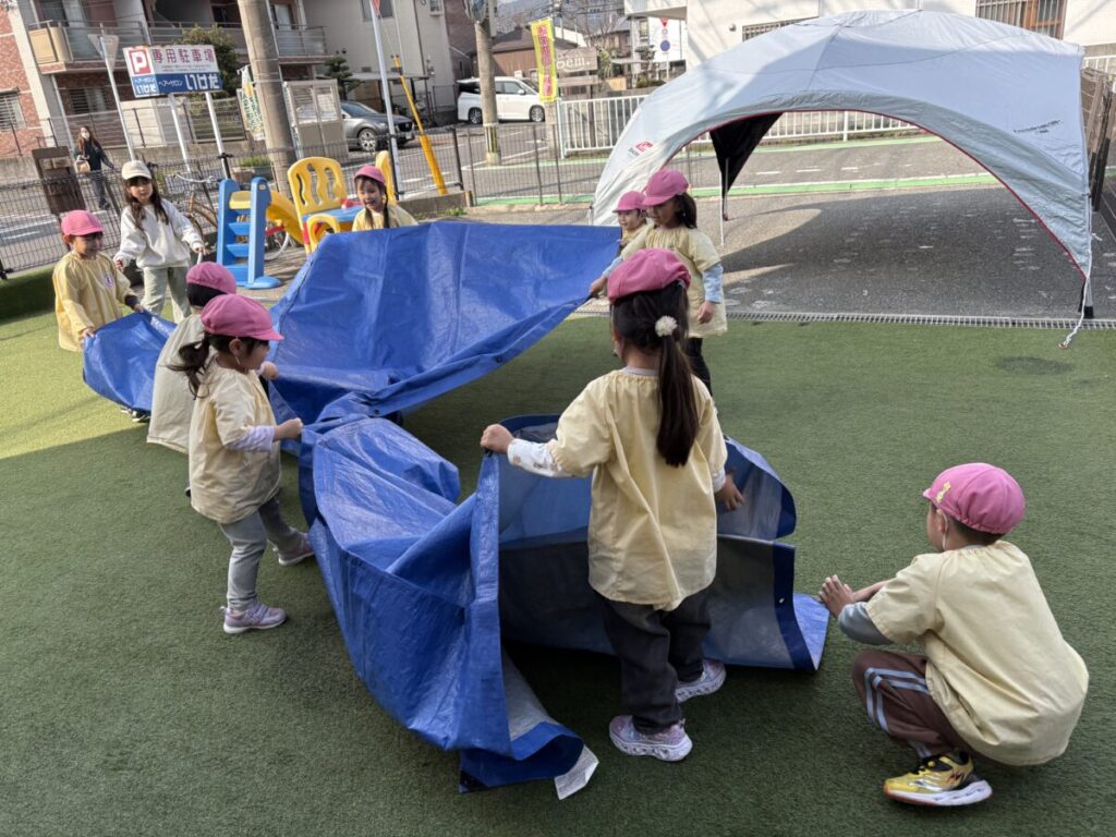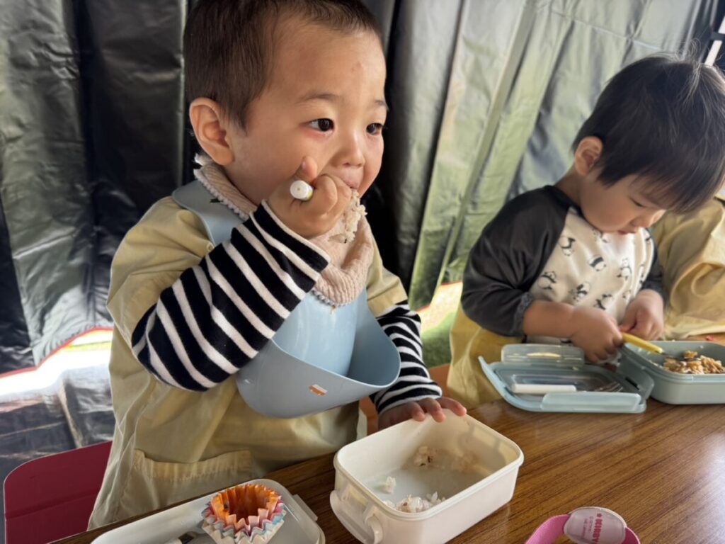 テントでは、お昼ご飯を食べて、みんなで遊んで、大きい子たちと小学生はお昼寝まで過ごす予定です✨