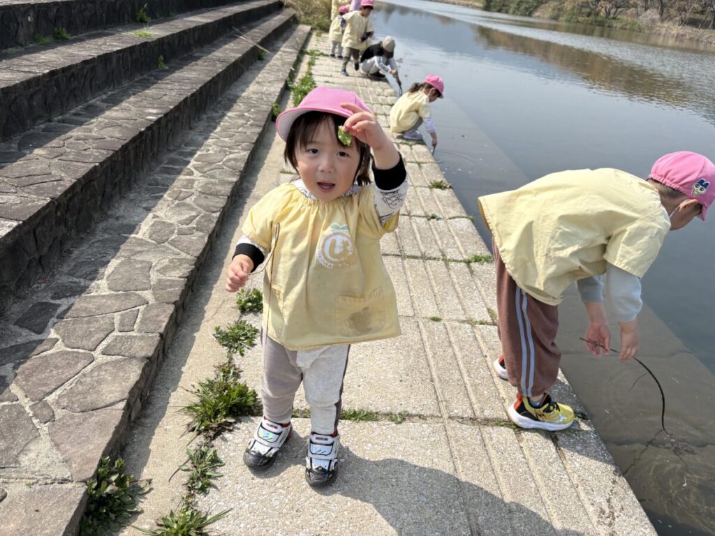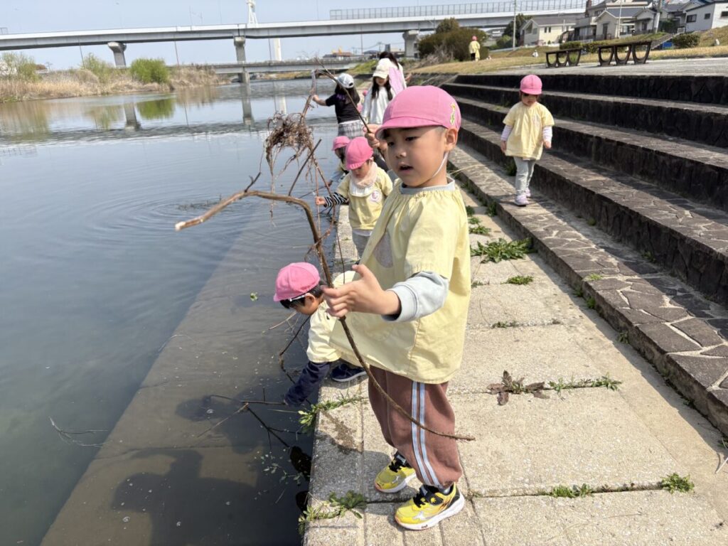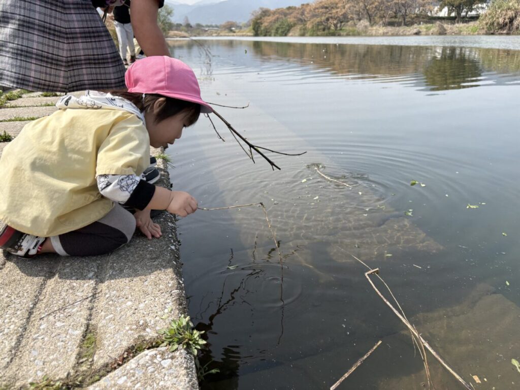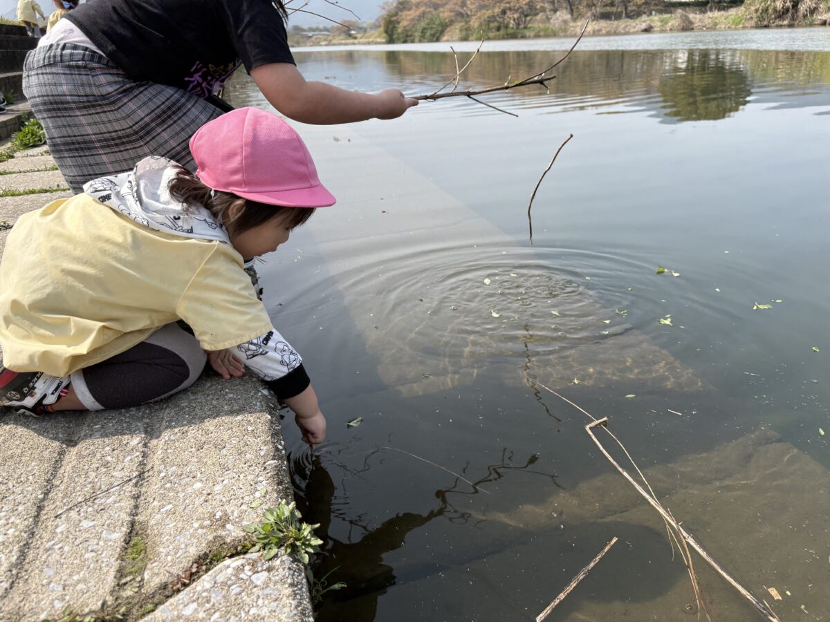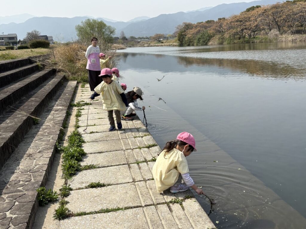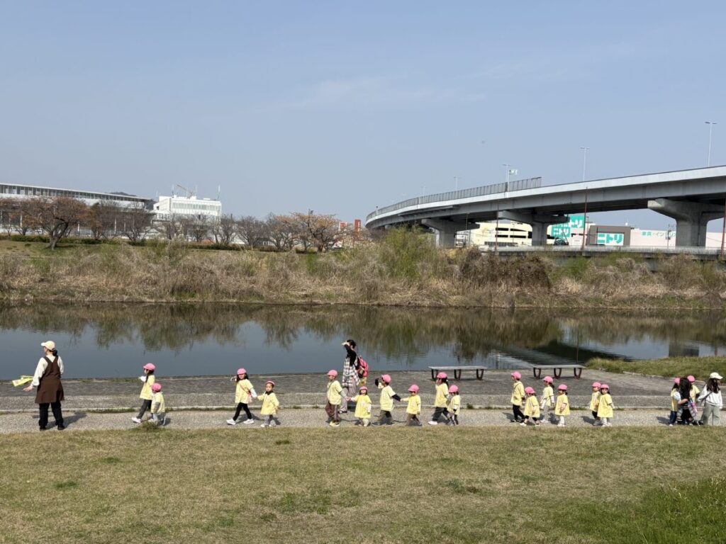 テントが立ち、小さい子たちがお部屋から降りてきて、室見川へ出発です!