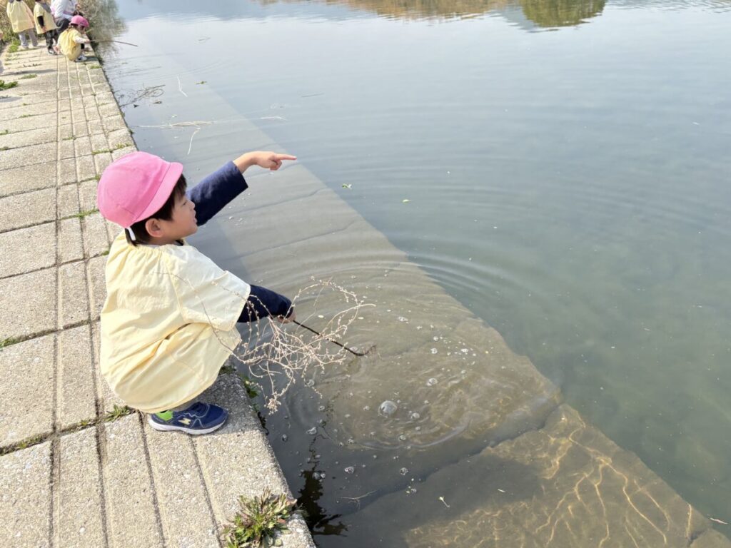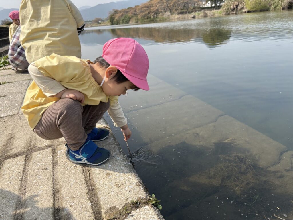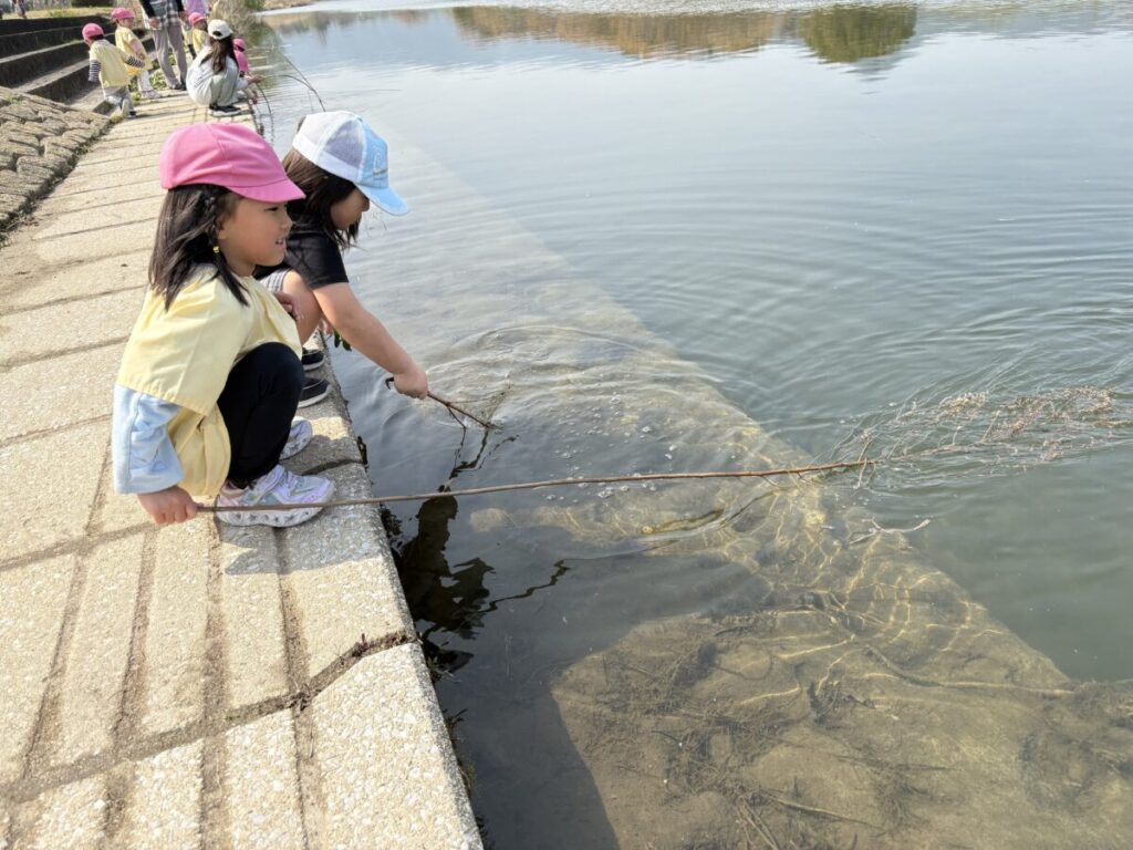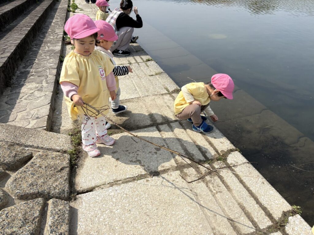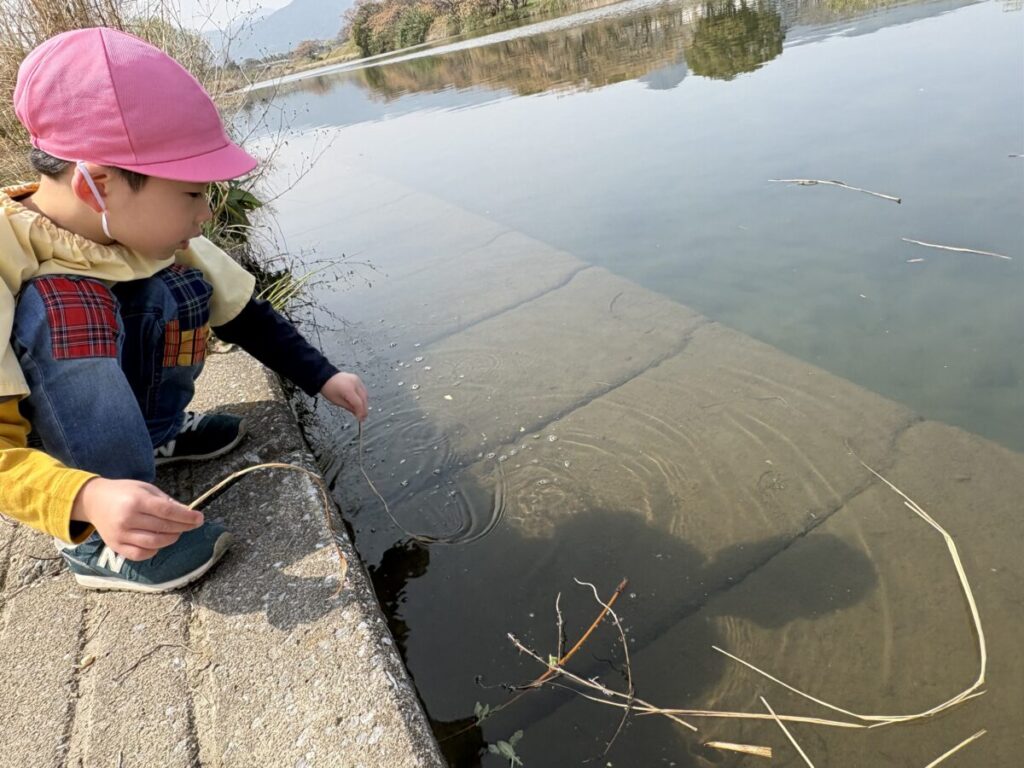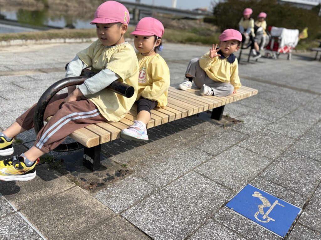 テントが立ち、小さい子たちがお部屋から降りてきて、室見川へ出発です!
