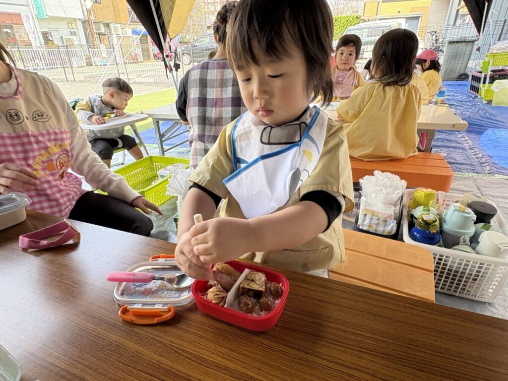 テント⛺️の中で食べるお弁当は