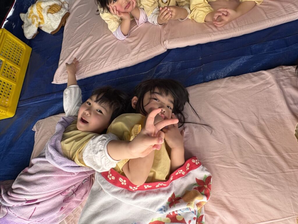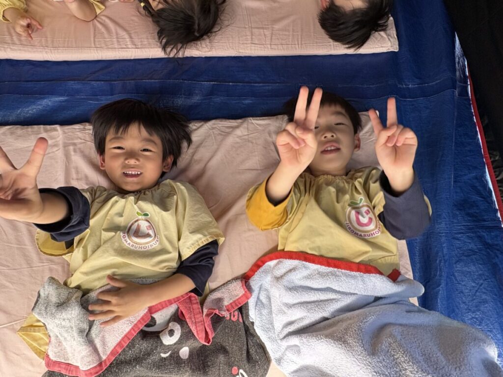 小さい子達は保育室、大きい子たちはテント⛺️でお昼寝しました💤💤