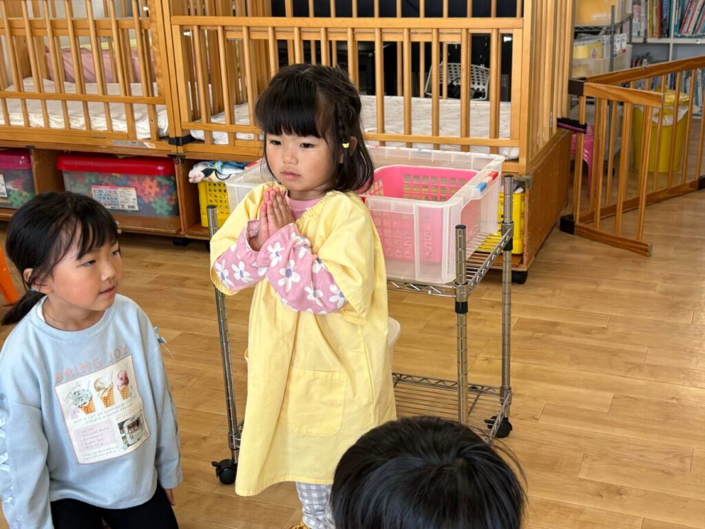 お当番さんのお仕事は、「いただきます」と「ごちそうさま」の