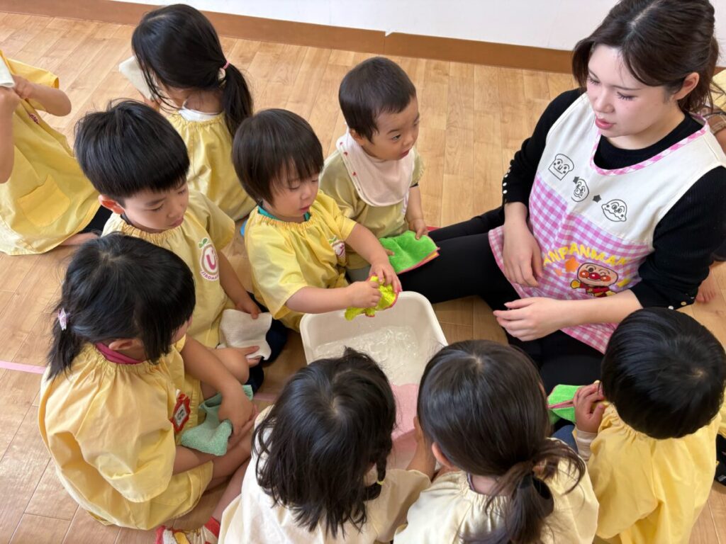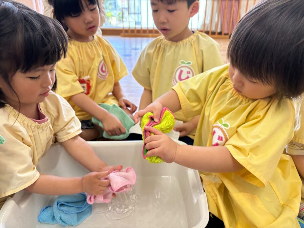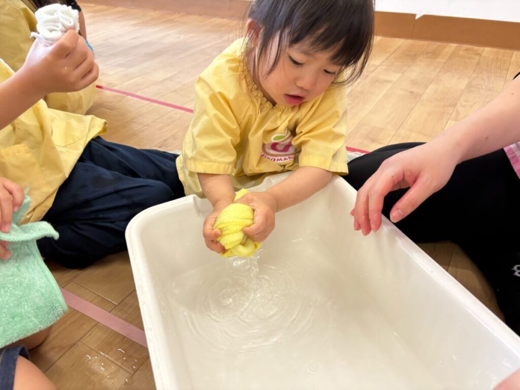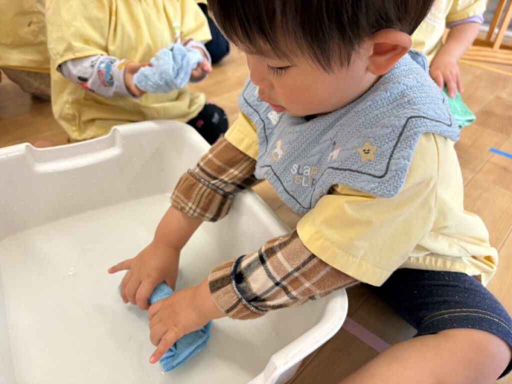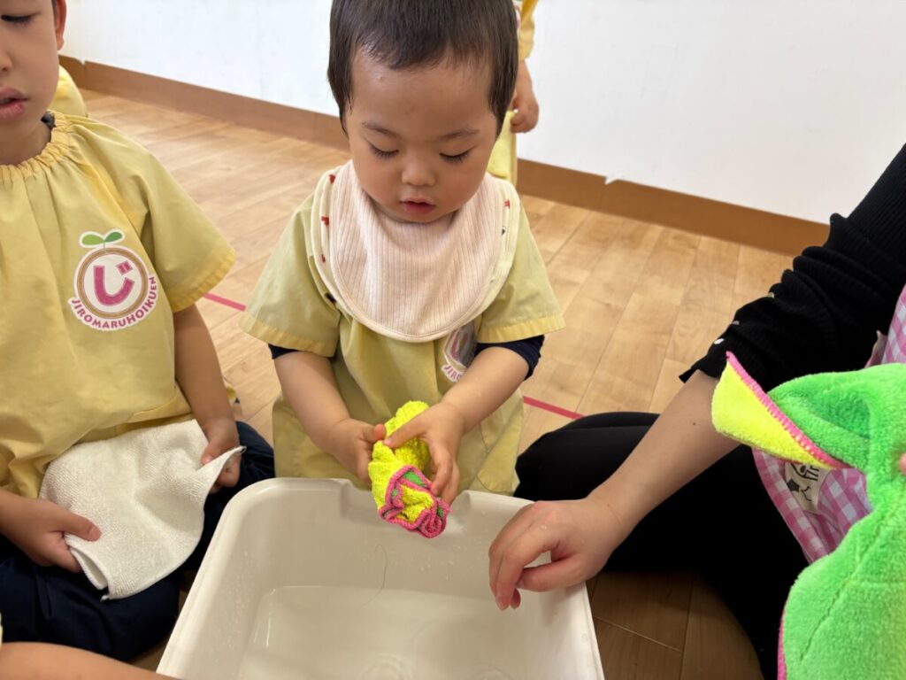 まずは ぞうきん絞りから(*^^*)