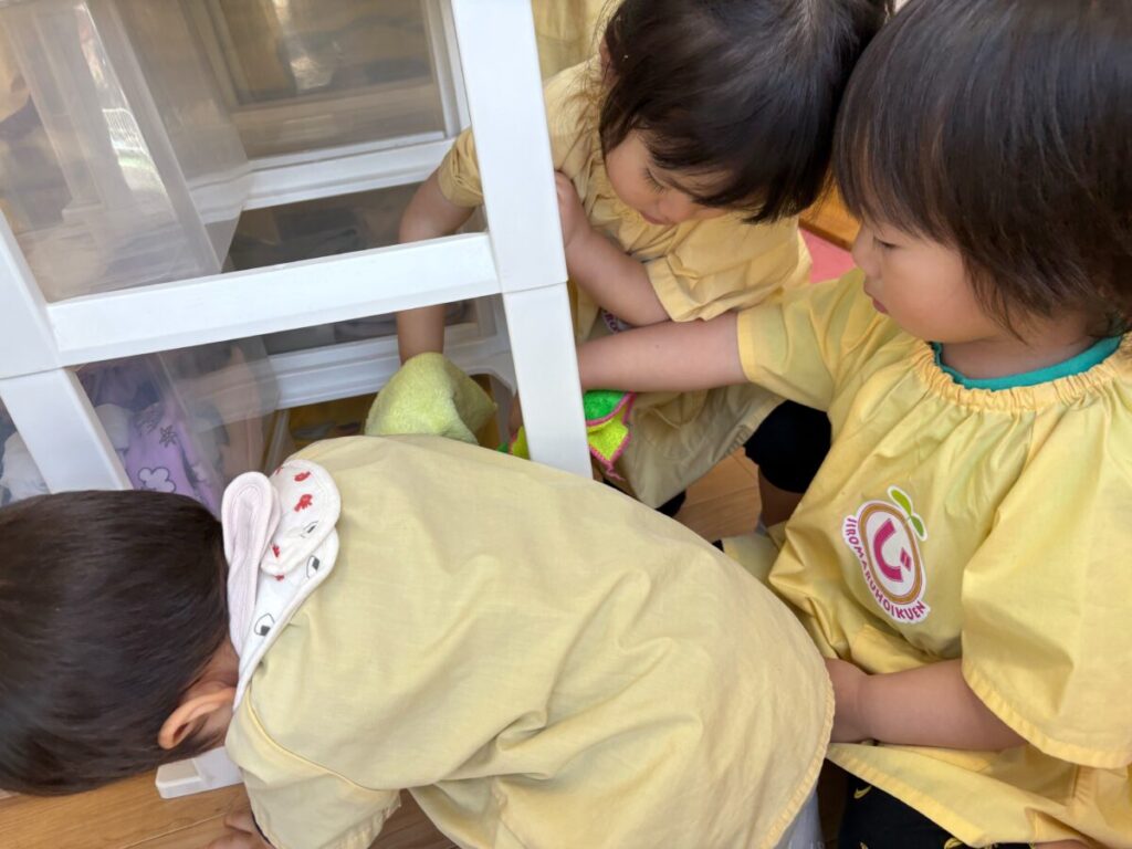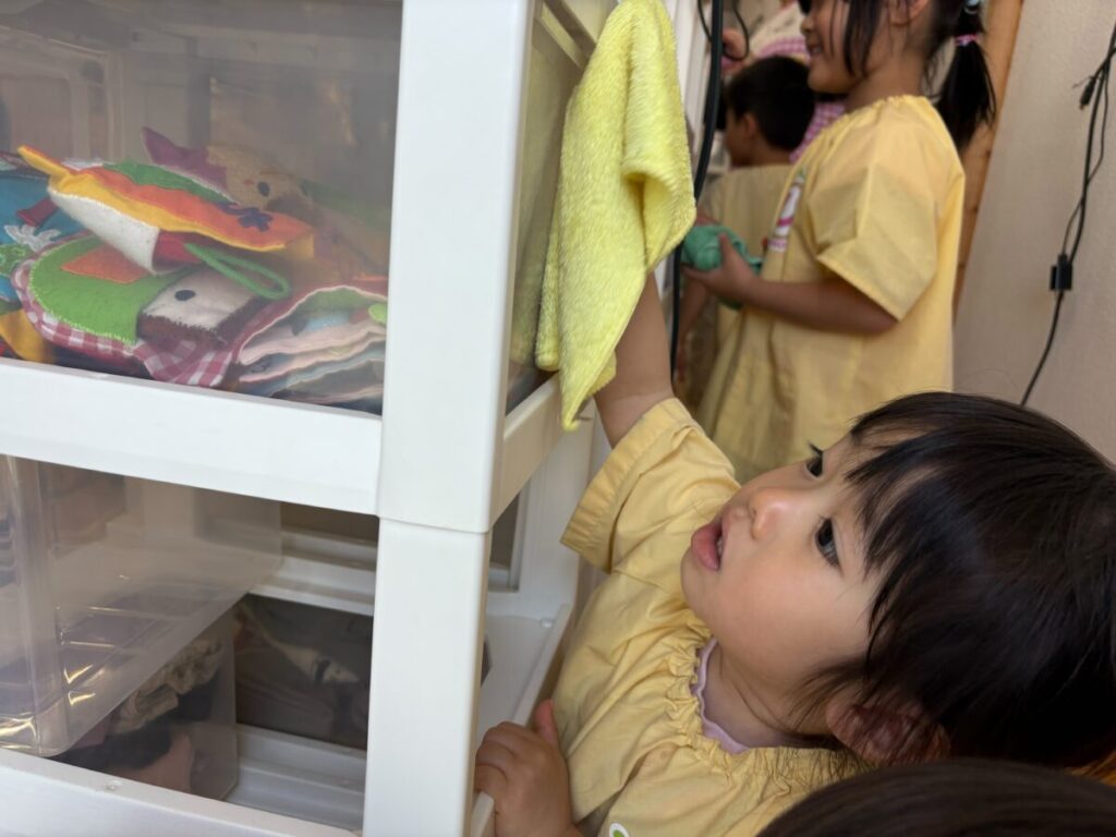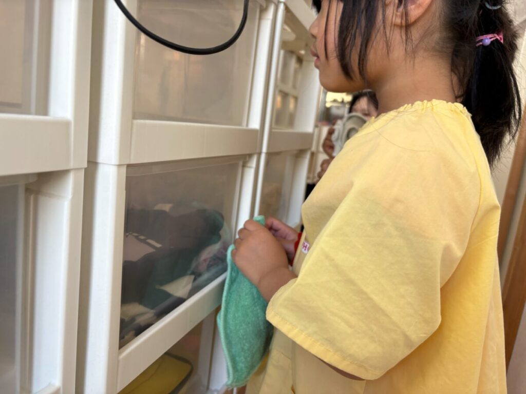 今日は、みんなでロッカーの裏のお掃除をしました。